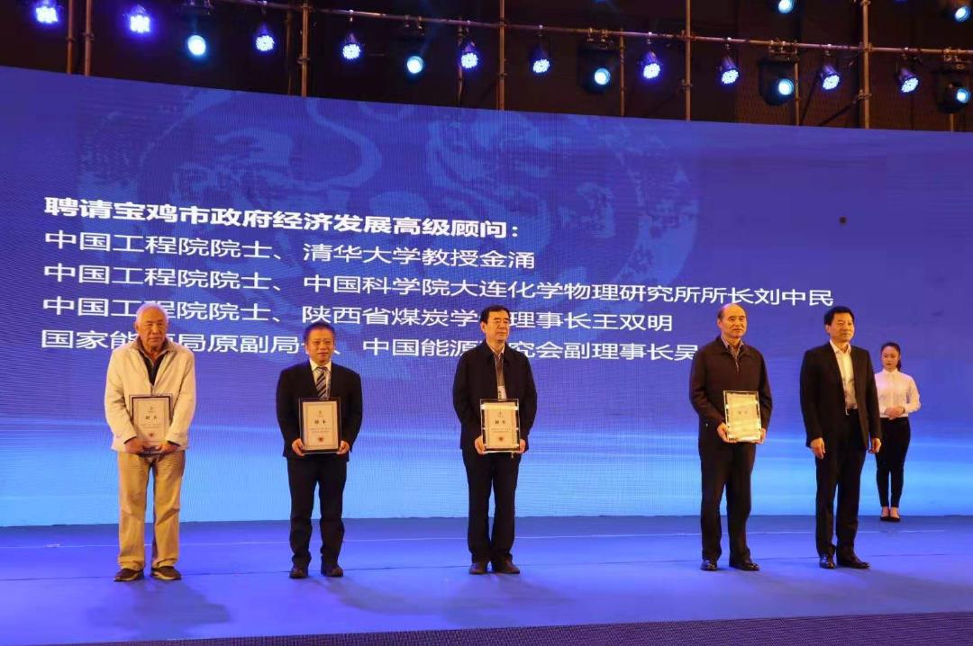 开幕式上,陕西省副省长、宝鸡市委书记徐启方向中国工程院院士、清华大学教授金涌,中国工程院院士、中国科学院大连化学物理研究所所长刘中民,中国工程院院士、陕西煤炭学会理事长王双明,国家能源局原副局长、中国能源研究会副理事长吴吟颁发了宝鸡市政府经济发展高级顾问聘书。