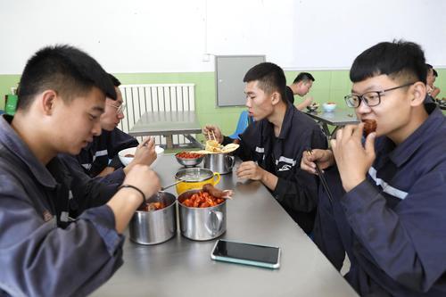 由于矿井刚从基建转入试生产阶段,一切都在不断规范完善中,加之矿井追求的是智能化、自动化、现代化、少人化管理模式。整个煤流线在运转过程中就显得人手不够,捉襟见肘。加班加点,工作时间长成为目前几位大学生员工的常态。他们每天上午七点半上岗,差不多都要到晚上七八点钟才能下班。中午如果拉煤车辆不多,他们来不及换下工装,到食堂匆忙吃顿午饭,若是车辆太多,煤炭销售量大时,他们只能派个代表到食堂买饭在岗位上应付一顿了。问及他们工作苦不苦时,几个小伙子几乎都说没觉得怎么苦。赵巍还用“青春就是用来吃苦的”这句话作了回答。可以看出,再苦再累,也掩饰不住他们阳光心态与热爱生活的一面。采访他们的当天中午,恰巧拉煤车辆较少,他们就相约去食堂就餐,当路过销售系统旁边的花丛时,几个小伙子纷纷拿出手机,定格他们心中的美丽,打算分享给最他们最亲近的人。