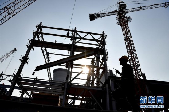 工人在河南周口燃机项目施工现场忙碌(2017年7月26日摄)。周口燃机项目是国家“西气东输一线”总体规划的重要燃气发电工程。 新华社记者 冯大鹏 摄