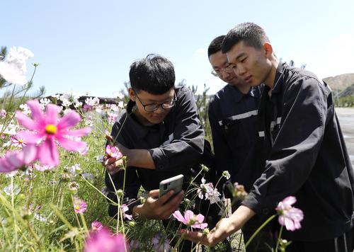 由于矿井刚从基建转入试生产阶段,一切都在不断规范完善中,加之矿井追求的是智能化、自动化、现代化、少人化管理模式。整个煤流线在运转过程中就显得人手不够,捉襟见肘。加班加点,工作时间长成为目前几位大学生员工的常态。他们每天上午七点半上岗,差不多都要到晚上七八点钟才能下班。中午如果拉煤车辆不多,他们来不及换下工装,到食堂匆忙吃顿午饭,若是车辆太多,煤炭销售量大时,他们只能派个代表到食堂买饭在岗位上应付一顿了。问及他们工作苦不苦时,几个小伙子几乎都说没觉得怎么苦。赵巍还用“青春就是用来吃苦的”这句话作了回答。可以看出,再苦再累,也掩饰不住他们阳光心态与热爱生活的一面。采访他们的当天中午,恰巧拉煤车辆较少,他们就相约去食堂就餐,当路过销售系统旁边的花丛时,几个小伙子纷纷拿出手机,定格他们心中的美丽,打算分享给最他们最亲近的人。
