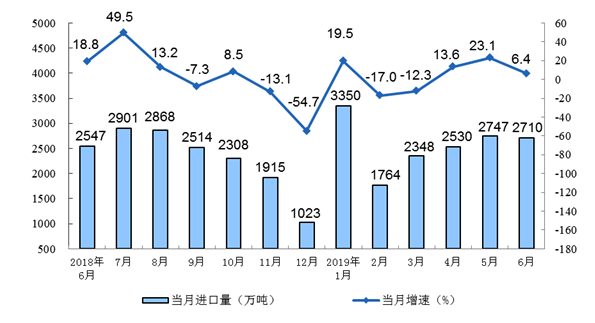 6月份,进口煤炭2710万吨,同比增长6.4%;上半年进口煤炭1.54亿吨,同比增长5.8%,一季度为下降1.8%。